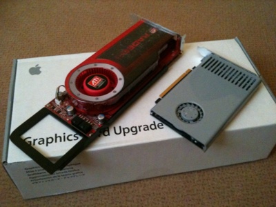 Došla mi krabice s ATI HD 4870 a tak jsem ji dal do nejrychlejšího slotu v Mac Pro. Už na první pohled mi bylo jasné, že to bude úplně jiná liga, viz. následující obrázek (vlevo 4870, vpravo 120).