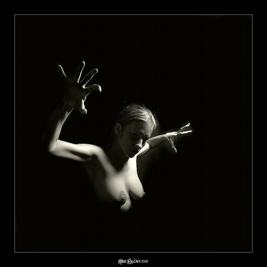 Druhý aspekt je ten, že nakonec domluvím s modelem, který se mi líbil, dohoda byla rychlá a bez problémů. Jenže v momentě kdy dojde do ateliéru nastávají problémy v tom, že nechce fotit to co chci já (moje chyba že jsem si předem s modelem nedomluvil rozsah focení) a nebo to co mám namyšleno model klidně udělá, jenže v nedokáže polohu či výraz dotáhnout tam kam já chci... Tohle většinou moc nejde odhadnout předem. Jedině si snad dobře prohlédnou portfolio modelu. Já osobně používám min. dvojí focení. První focení jen jako rozcvička a druhé - už se známe a víme co od sebe můžeme očekávat. Většinu svých sérií určených pro výstavu jsem fotil takto. Nikdy to nebylo napoprvé.