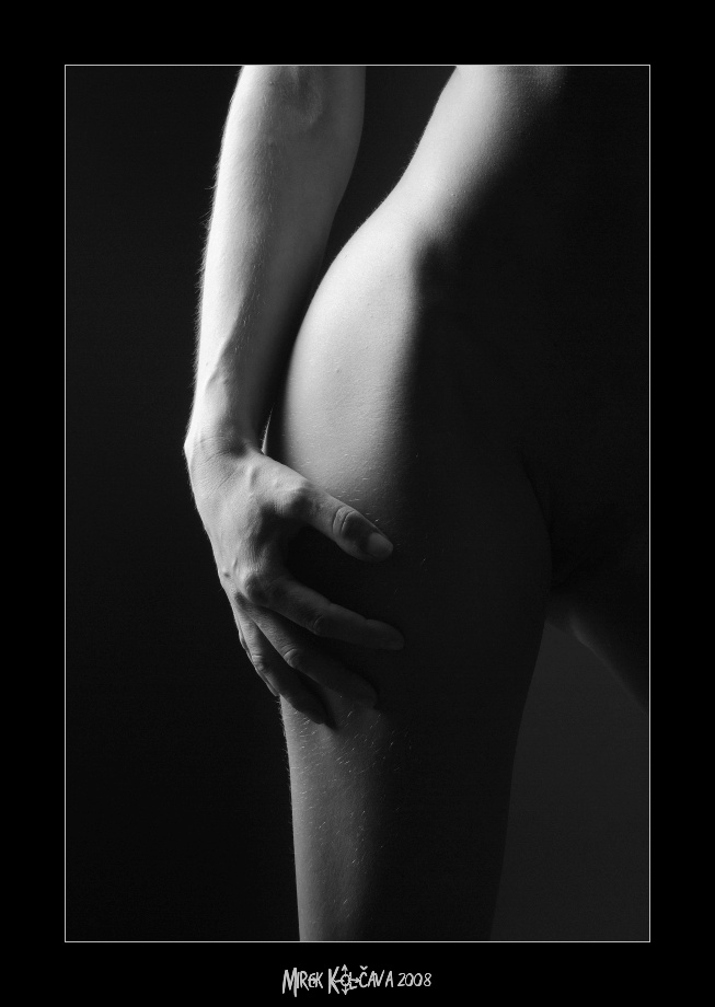 Ostření a hloubka ostrosti. Stává se že když si nastavím nízké clonové číslo není ostré vše co chci a musím provést úpravu. Naštěstí je to v digitálu možné zjistit hned. U focení aktů ostřím většinou na střed těla, nebo na dominantní část kompozice. Ale může se stát, že horších světelných podmínkách bude automatika na ostření mít problém. Hold hladké tělo neposkytuje mnohdy nic na co by se automatika chytla. Pokud se to stane ostřím na obličej. U detailů je to zase podle kompozice a záměru. Zjednodušeně je možné říct že většina objektivů má menší zaostřenou část před zaměřeným bodem jak za ním. U portrétu zase ostřím na oko a pokud fotím profil pak na kořen nosu.