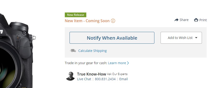 Zatím ale ani americký obchod B&H nemá předobjednávky, pouze možnost nechat si zaslat upomínku, jakmile produkt zalistují.