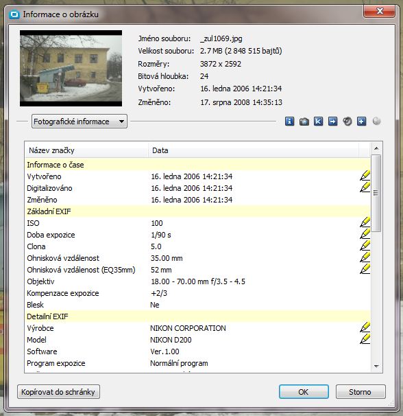 Bohužel Nikon se v tomto chová poněkud “neuživatelsky”, v jeho firemním nástroji Nikon ViewNX pro vyvolávání fotografií žádný takový údaj nevylovíte. Nikde...