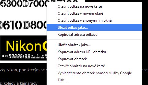 Pokud si návod pro svůj fotoaparát Nikon chcete uložit, klikněte pravým tlačítkem myši - Uložit jako odkaz.