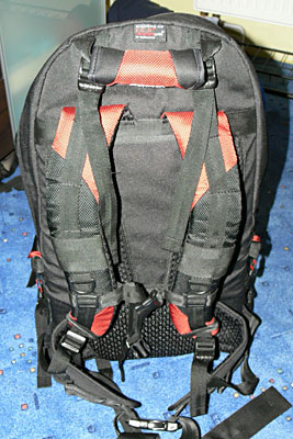 Co se týče stativu, je škoda, že výrobce má řešené upevnění jen zespodu, já ho nosím z boku. Udělal jsem si jeden popruh, který mám provlečený kolem vrchního ucha a jednoho popruhu, to mi drží stativ za hlavu, nohy mu podvlíkám za jeden z bočních popruhů. A na spodku místo stativu jsem přes zimu nosil připevněné sněžnice. Kratší stativ ale v pohodě dáte i zespodu, bude to líp vyvážené, akorát bude trčet lehce do stran.