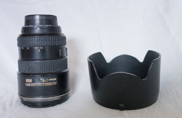 Nikon 17-55mm f/2,8 AF-S DX ZOOM-NIKKOR IF-ED včetně krytek a sluneční clony