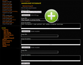 - Z levého menu vyberte Fotogalerie - > Nahrávání fotografií
