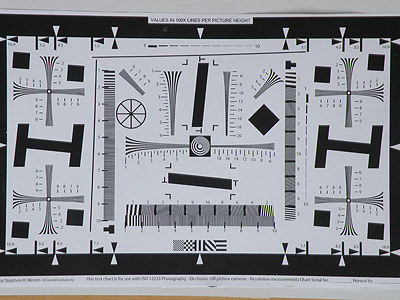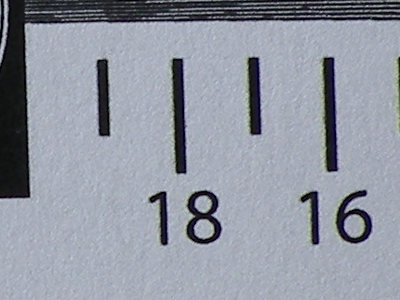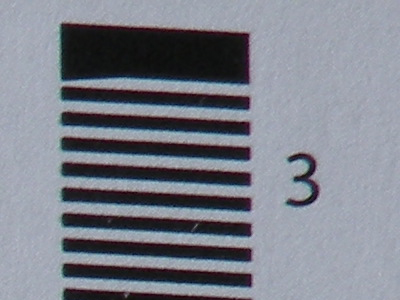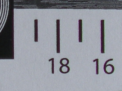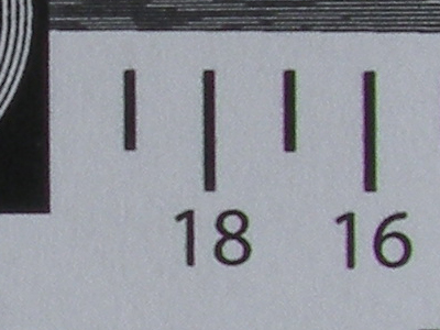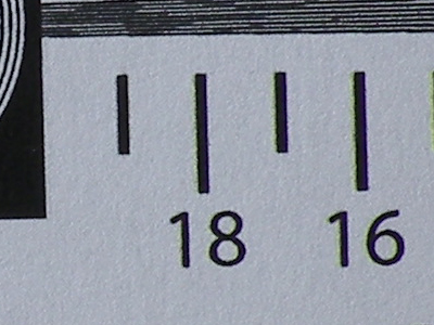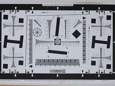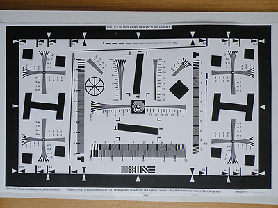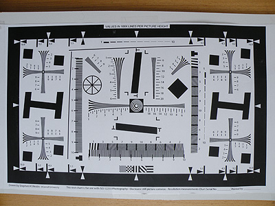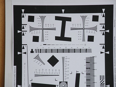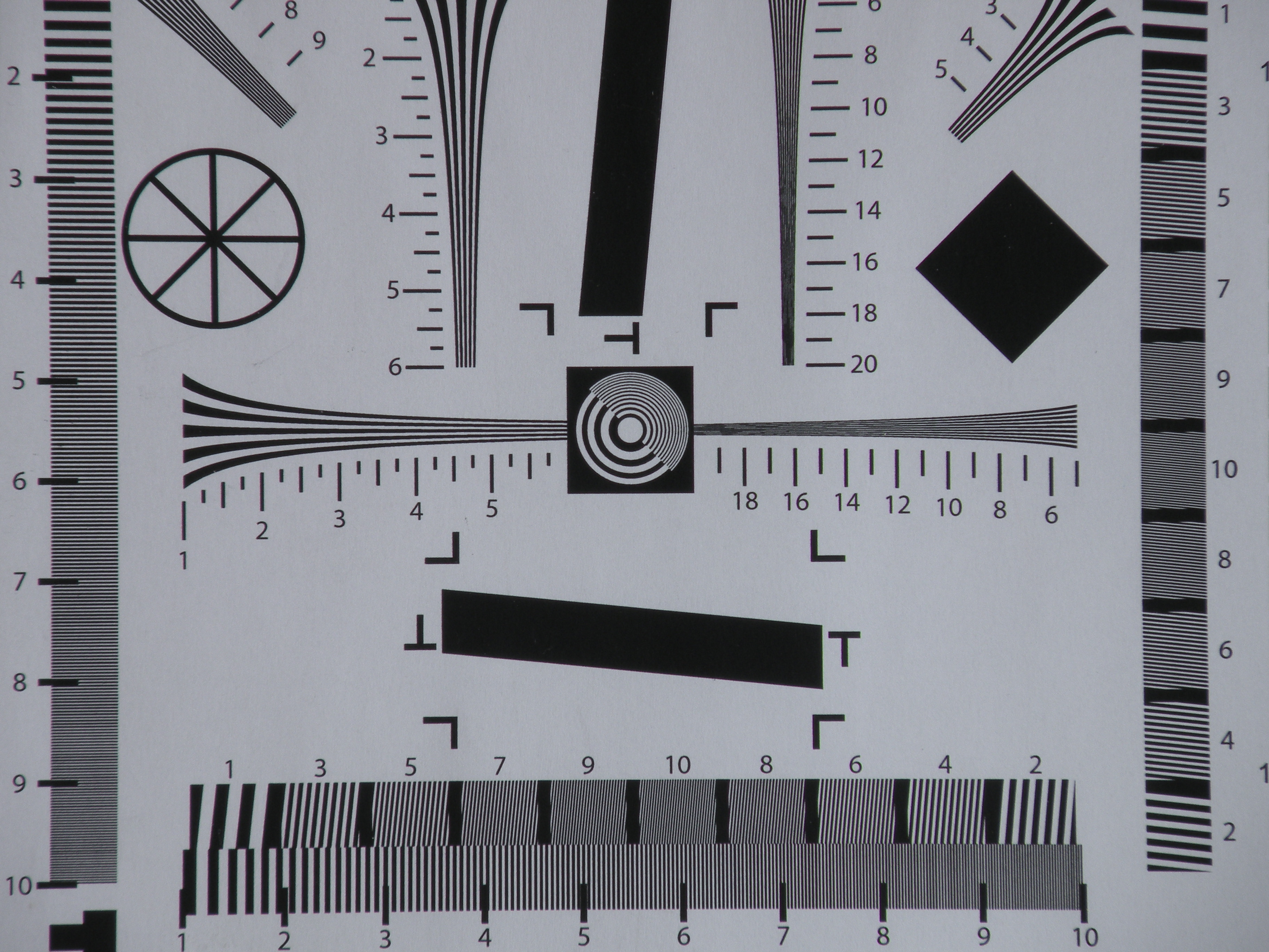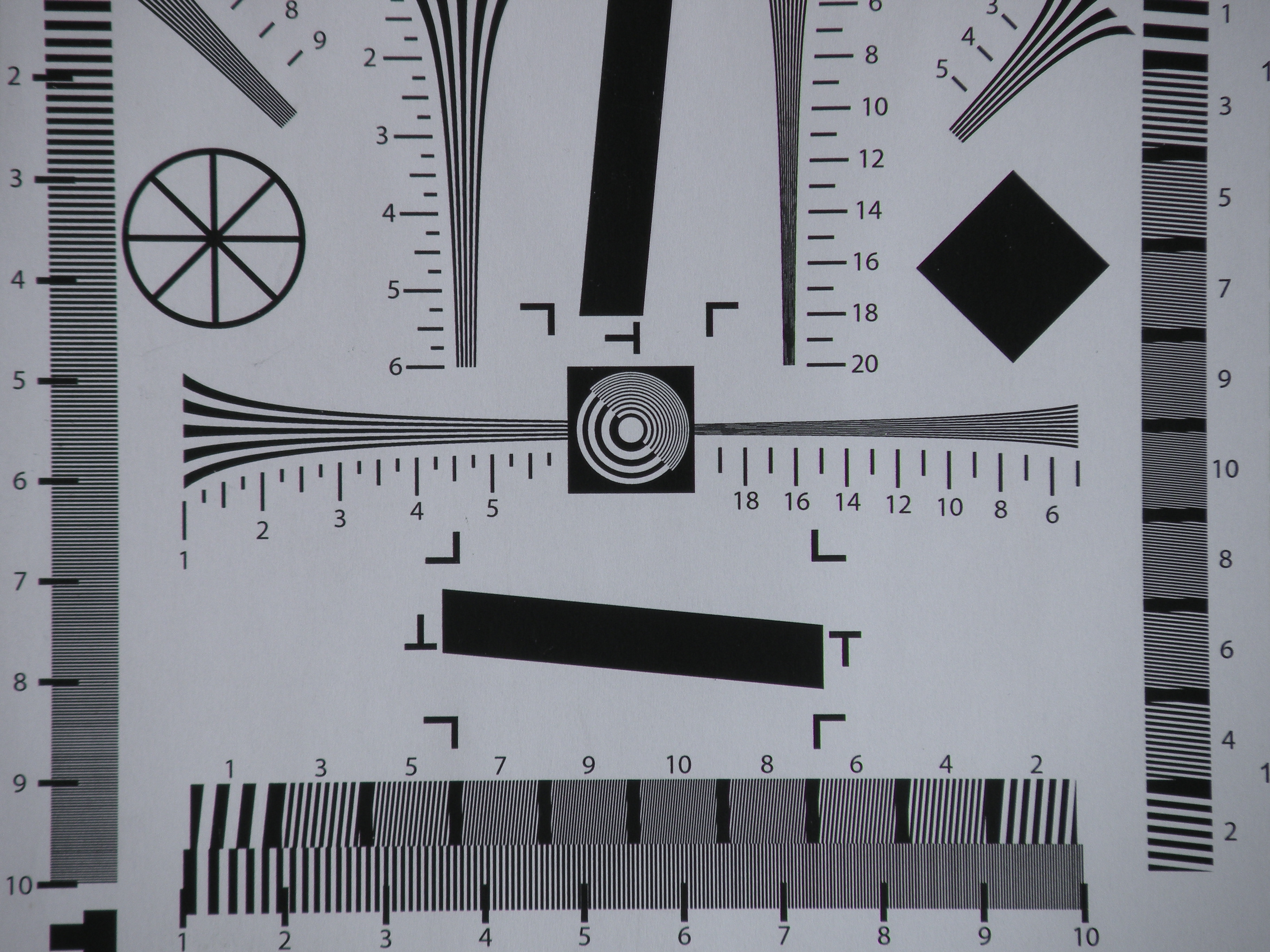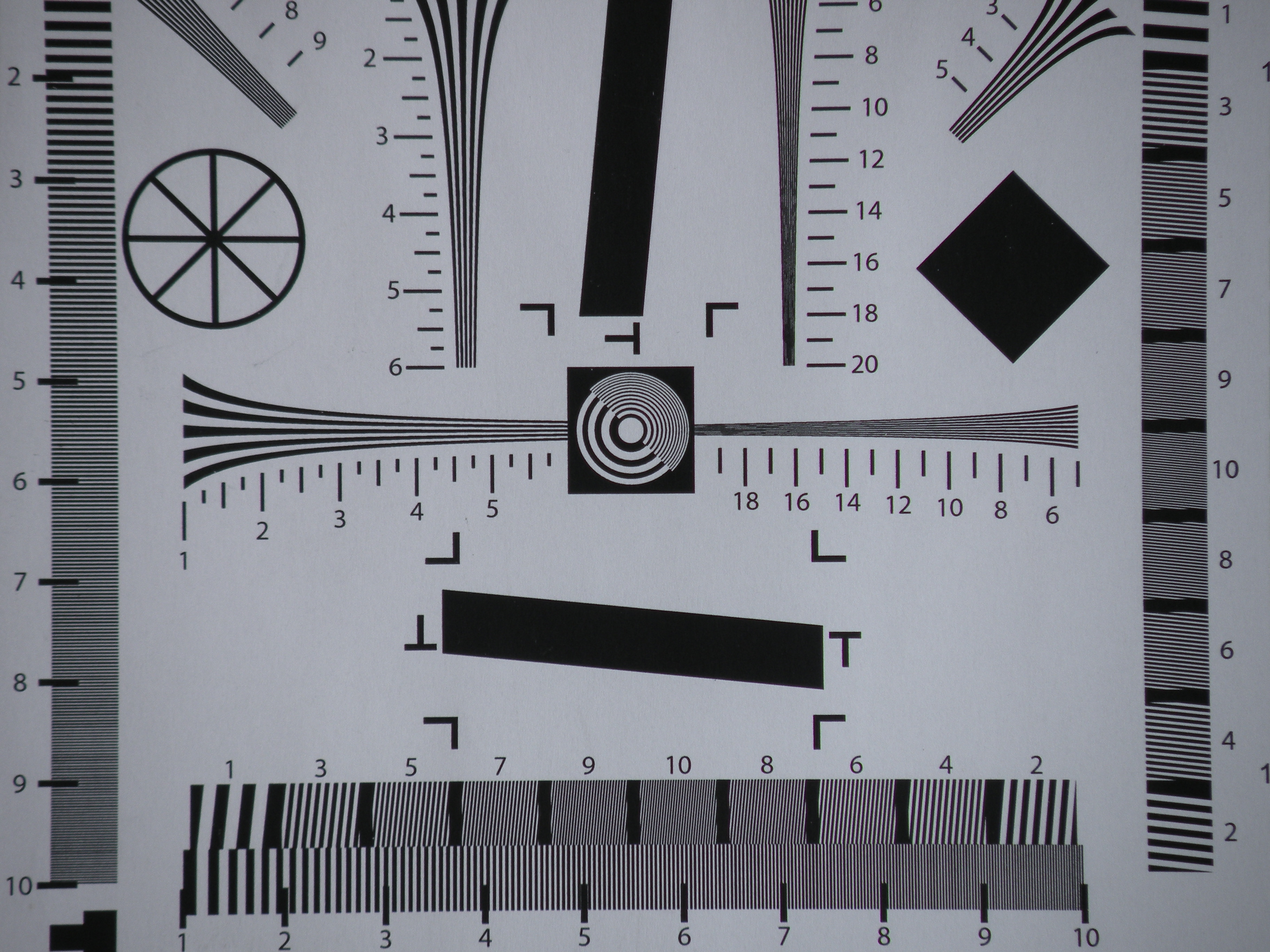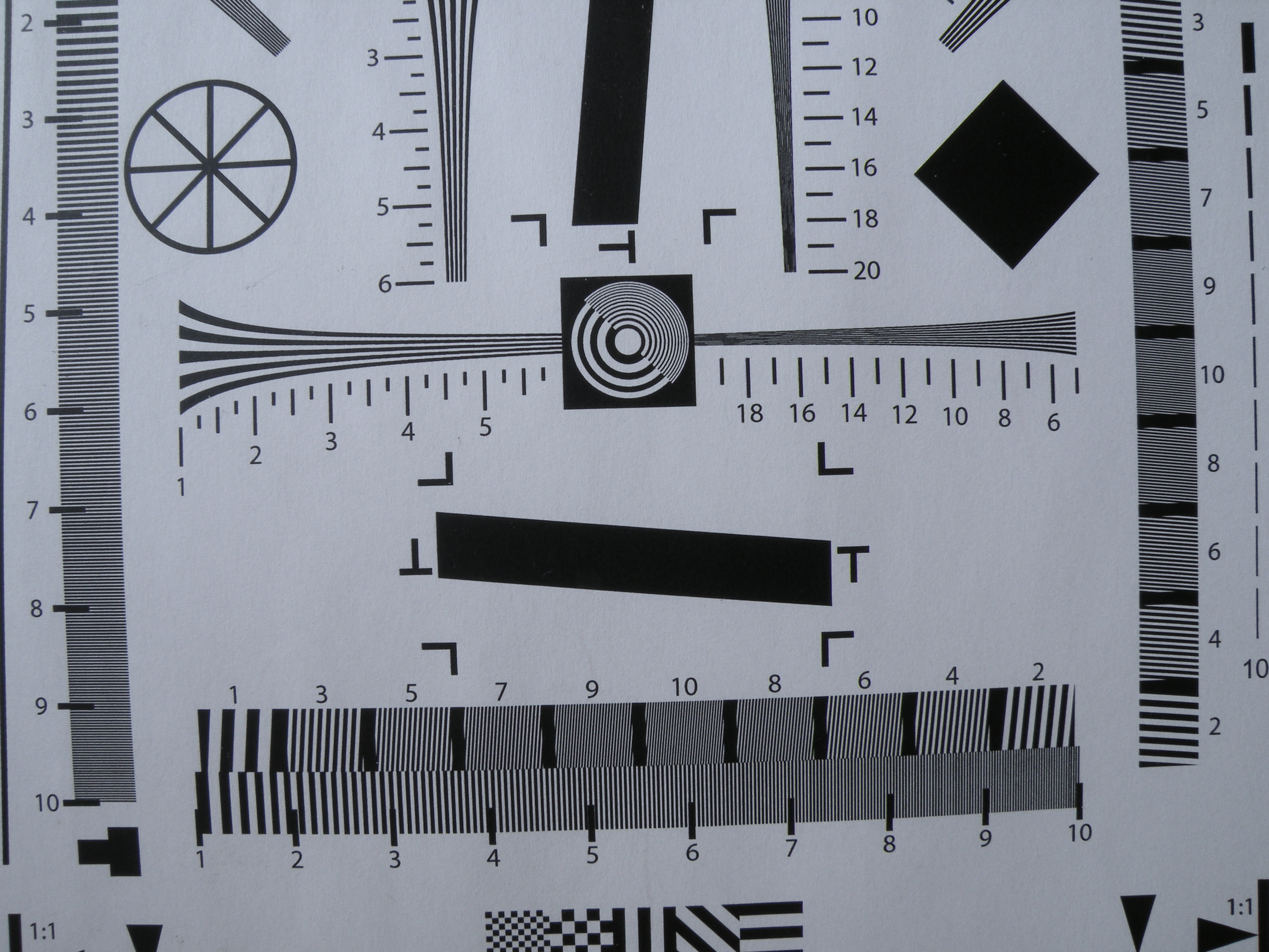 Pozor! Testovací obrazec není vytištěn v měřítku, takže nelze ze snímků odčítet údaje o rozlišení snímače a objektivu!