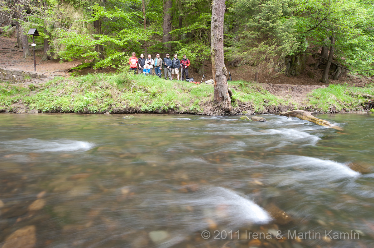 Jelikož jsme na Chřibském vrchu skončili v době, kdy mnozí teprve otevírali ve svých postelích oči, vyrazili jsme ještě před posledním dopoledním programem na fotografování bystřiny Křinice. Na levém břehu Křinice jsme mohli fotografovat uvnitř Vinného sklepu. Od Křinice také pochází fotografie celé skupiny, která se na focení bystřiny účastnila, a je to nejúplnější foto celé expedice.