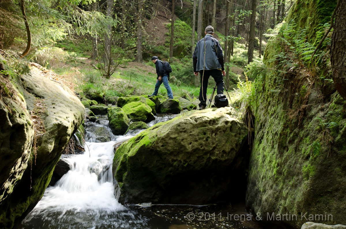 Celý program doubického Českého Švýcarska 2011 jsme zakončili výletem k Dolskému mlýnu, kolem kterého protéká řeka Kamenice. Po proudu i proti jsme se po krátkém zaučení, jak fotografovat tekoucí vodu, dostatečně rozprostřeli, abychom si vzájemně nepřekáželi. Bohužel k Mlýnu byla stržena lávka.