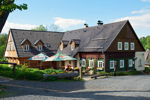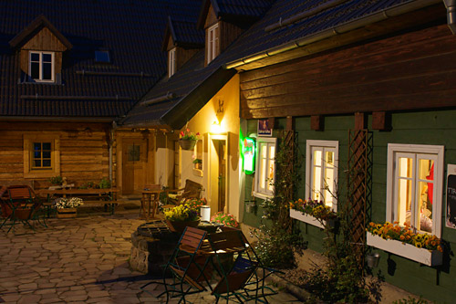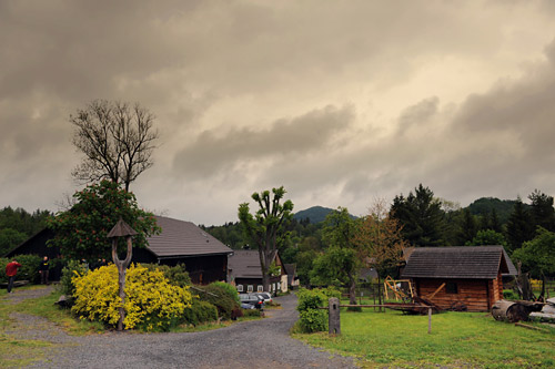Není to HDR. V okolí penzionu nebyly žádné lampy. Světlo bylo pouze z oken a nad vchodem. Bylo to foceno ve 21:30, objektivem 24-70 f2,8, ohnisková vzdálenost 24mm (foťák D90, takže po přepočtu na kinofilm je to 36mm). Manuální režim - f/5, rychlost závěrky 1s, ISO 400. Následně jsem v Aperture ručně vyvážil bílou, zkorigoval přepaly a vyexportoval do JPEG. A jak se tak dívám, Lukáš to ještě trochu zesvětlil. Takže fotografie skoro bez úprav :-)