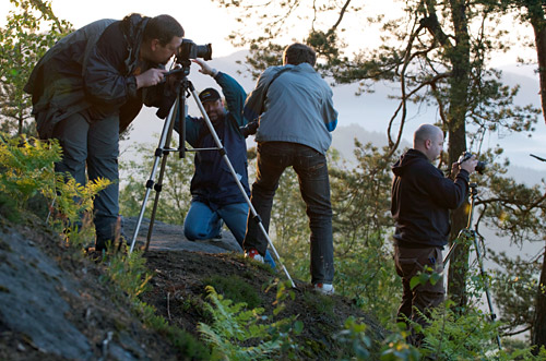 Předpověď na neděli byla více než slibná, takže jsme si nařídili budíka na čtvrtou a vyrazili na východ slunce. Krajina byla zastřena mlhou, z níž se pomalu probouzela do nového dne. Brzké vstávání se určitě vyplatilo. Ještě spící krajinou se ozýval pouze ranní zpěv ptáků. Teplota okolo 4 °C. Soustředěné pohledy fotografů a cvakání závěrek...