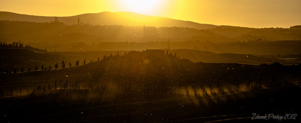 Mám zkušenost, že fotografové se s námi do Toskánska vydávají různě techniky vybavení (většinou dostatečně), ví, co by chtěli fotit, ovládají dobře fotoaparát atd. Co ale mnohdy chybí je vycvičený smysl pro orientaci, pohyb slunce, takové ty intuitivní návyky, které člověk získá léty pohybu v přírodě - i bez fotoaparátu. Prostě se hodně hodí, když máte představu, kdy a kde vychází Slunce, kdy a kde zapadá, rychle se orientujete, kam se v další hodině pohne. Myslím si, že tohle je také dost věcí cviku.