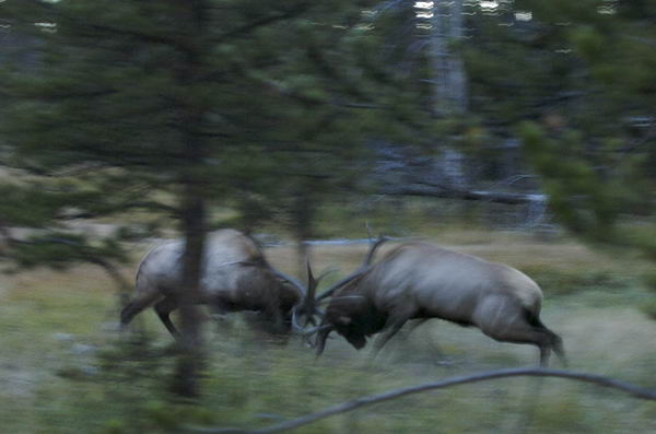 Asi snímek kamzice, kterou jsem fotil v hrozném počasí – bylo zamračeno a mlha. Ale z té fotky „čiší“ jakási pohoda a já snímek nazývám „Lady“. A potom ještě souboj jelenů wapiti z Yellowstonu.