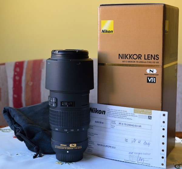 Prodám nový objektiv Nikkor AF-S, 70-200mm f/4G včetně nového UV filtru. Kupovaný 28.2.2014 u autorizovaného prodejce NIKON. Prvotřídní stav, záruční list, doklad o nákupu.