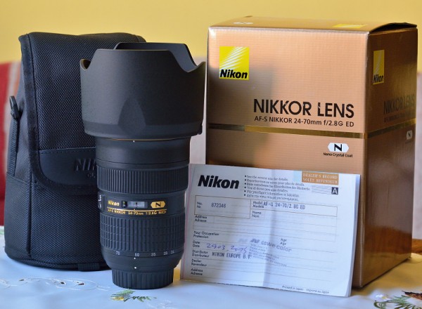 Prodám nový objektiv Nikkor AF-S 24-70mm, f/2,8 G včetně nového UV filtru. Kupovaný 29.3.2014 u autorizovaného prodejce NIKON. Prvotřídní stav, záruční list, doklad o nákupu.