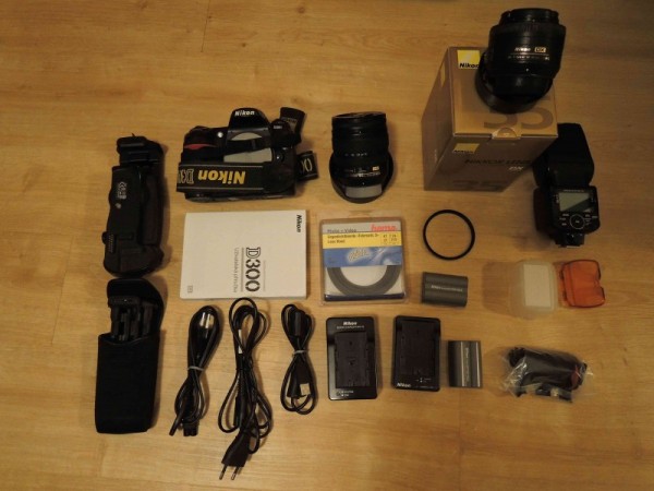 - Tělo (cca 55.000 fotek), popruh, krytka LCD a sáněk blesku, očnice, bettry pack MB-D10 s oběma šuplíky