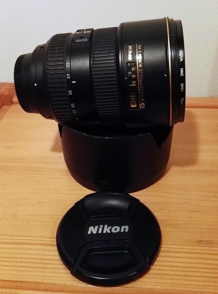 Prodám dlouhý objektiv na Nikon. Velmi málo používaný (= tříměsíční cestování, od té doby s ním nefotím). Součástí nabídky jsou obě krytky, originální hadrové pouzdro + clona proti slunci.
