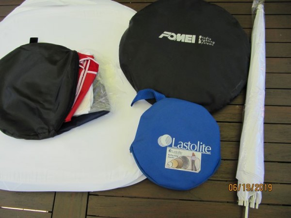 - dvě velikosti odrazných (změkčovací rovněž) desek 3v1 ,5v1 různé barevné provedení, vhodné pro portrétní fotografii a přisvícení, nebo změkčení denního světla v exteriéru