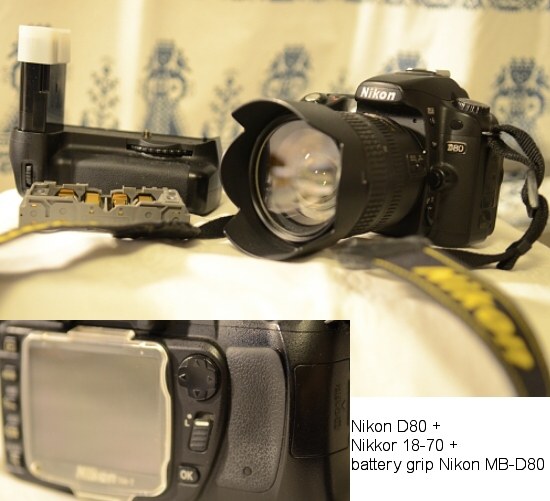 Prodám Nikon D80, Objektiv 18-70mm f3.5-4.5G ED-IF AF-S DX Zoom NIKKOR, Originální Nikon battery grip Nikon MB-D80.