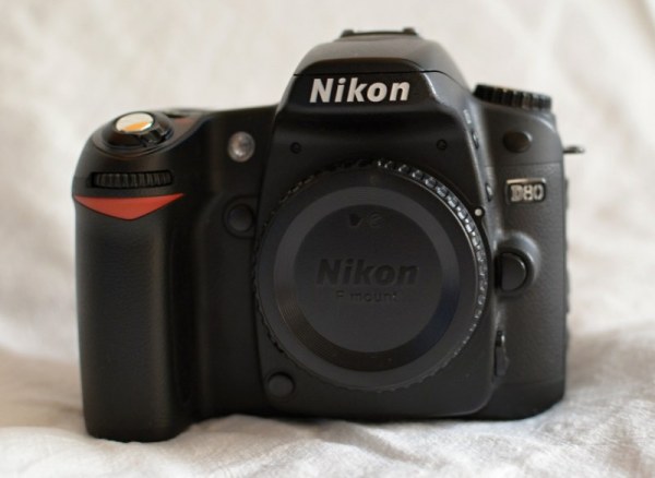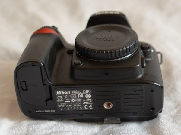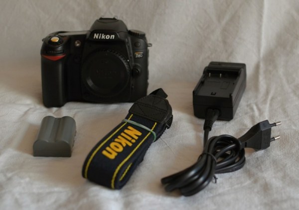 Součástí prodeje je tělo Nikon D80, nabíječka, baterie, popruh, krytka bajonetu a krytka zadního displeje.