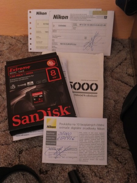 Prodám nikon d5000 ve velmi pěkném stavu, už bohužel bez záruky, ale absolutně bez poškození. Nafoceno cca 15000 expozic. K fotoaparátu je oběktiv nikkor 18-105 VR, sluneční clona, paměťová karta SanDisk 8GB,poukázka na deset čištění čipu zdarma, kabel k PC, kabel k televizi, štěteček a hadřík na oběktiv nebo na filtry, nabíječka, orig. pouzdro NIKON a pouzdro na oběktiv + krytka těla a krytka oběktivu. Fotoaparát nošen v pouzdře a minimálně používaný.