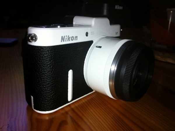 Jedná se o bílé tělo 1V1 s černými koženými polepy(vzhled analogových nikonů).