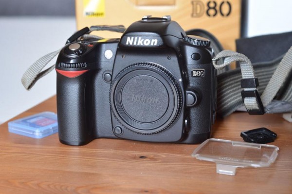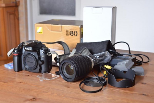 Prodám Nikon D80. Vše funguje jak má, stav je 100%. K foťáku jsou 2 baterie (každá výdrž cca 1000-1500 snímků), nabíječka, karta SD 2 GB, manuál, kabely k připojení do počítače a do televize, originální software ke správě a úpravě fotek, krytka na display, krytka na očnici a originální krabice.