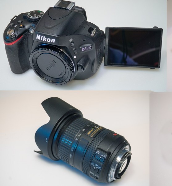 1. Nikon D5100 tělo (závěrka má cca 7800 snímků, zakoupeno v létě 2013) včetně veškerého dodávaného příslušenství a s poukazem na 4x čištění čipu